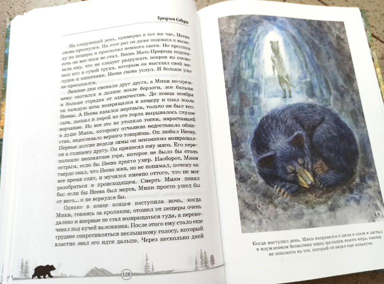 Про возраст: маркирована 12+. Раньше ребенок многое не поймет, книга может пройти мимо. Но вот если прочтете книгу вы ребенку, то вам будет, что обсудить и в более раннем возрасте. Должна предупредить: есть жестокие сцены. Одни из них вполне естественны: когда собака, спасая свою жизнь в неравной схватке, вгрызается в горло волку, льется кровь.