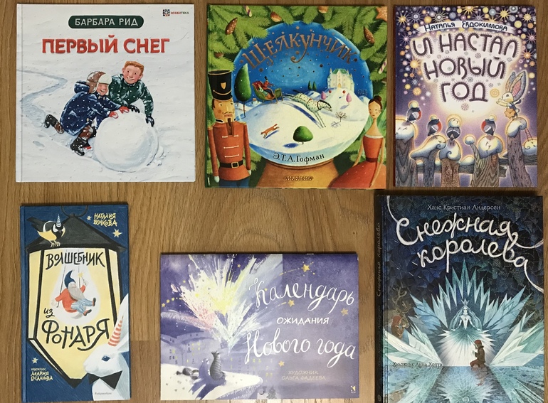Моей дочке в декабре будет пять. У нас много книг осталось с прошлых лет. Но и к Новому году 2021 уже начала потихоньку покупать книги. Купили "Кругосветный дед мороз", "Путешествие голубой стрелы", "Морозейка минус два", " Самый маленький снеговик. Волшебная пещера" (Очень любим серию книг про самого маленького снеговика), "И наступил новый год". В прошлом году покупала серию книг Усачева "Дедморозовка", но читать ее не стали (для дочки было рано), в этом году планирую, что мы ее прочитаем.