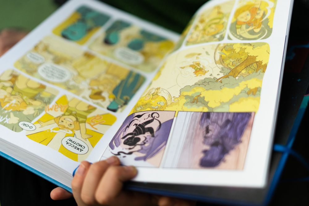 В магазине с играми увидела продолжение Пяти миров! Срочно связалась с бабушкой и книга была подарена тоже. Сын очень ждал новую часть графического романа, а получив в подарок, что-то замедлился. Оказывается события разворачиваются нешуточным образом, погибают герои, тяжёлые события (на его взгляд). Но книга, как и две предыдущие в фаворитах нынешние празднично-больничные дни.