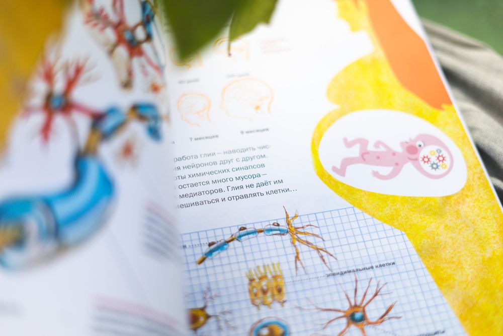 Вторая книга серии Про от Арт-Волхонки у нас. О головном мозге написали уже знакомый нам по первой книге о клетках биофизик Юрий Нечипоренко и нейробиолог Вера Толченникова. Если я выбираю научно-популярные книги, то они должны быть написаны авторами, которые сами занимаются выбранными темами профессионально или вместе со специалистами консультантами-соавторами. Это как раз такой случай. Биология, микробиология, физиология - всё это большие интересы сына, которые мне хочется поддерживать, или если не хочется, он сам выискивает любые возможные пути, и мне нравится, что он делает это в компании с такими книгами как Про. Как и в предыдущей нашей книге здесь множество рисунков и, что особенно интересно, фотографий, за которые отдельно выражают благодарность фотографу. Сравнивают нервную систему разных живых существ, рассказывают, конечно, об органах чувств и том, что бывает, если функция нарушена. Лёва сразу открыл, он умеет, на всяких болезнях и проблемах.