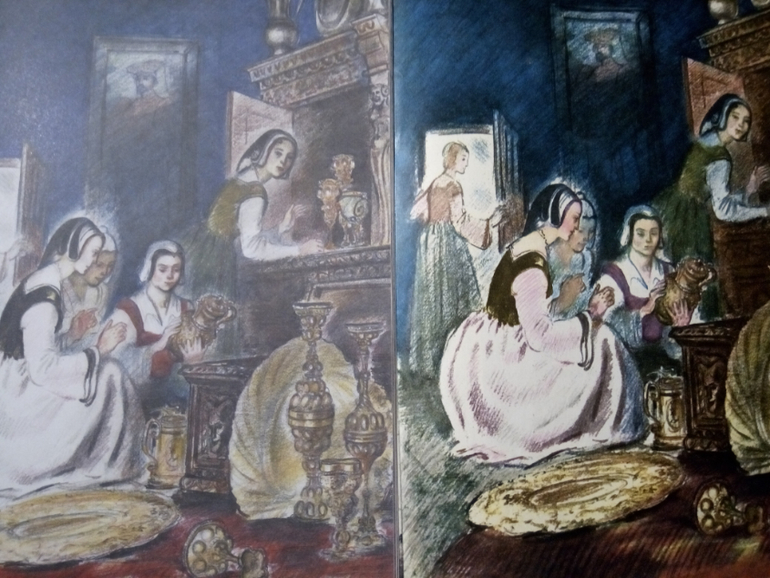 В старой книжке (справа) цвета почему-то выглядят более яркими и сочными.