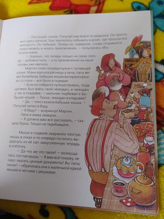 Ну и от мамы: как-то много нелогичного и несостыковок. То семья спокойно разговаривает с мышами, например, а потом оказывается ничего не понимают в голубином . То живут как обычная семья, где дети ходят в садик, то вдруг вспоминают, что это сказка и перемещаться можно силой мысли. То выдумывают сложный план освобождения попугая, то вдруг оказывается можно было просто клетку открыть.