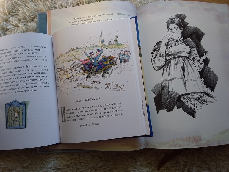 "Леди Макбет Мценского уезда". Книга выполнена качественно, иллюстрации черно-белые, мне понравились. (Не стала переделывать фотки отдельно, вторая книга - "Левша" изд. "Акварель")