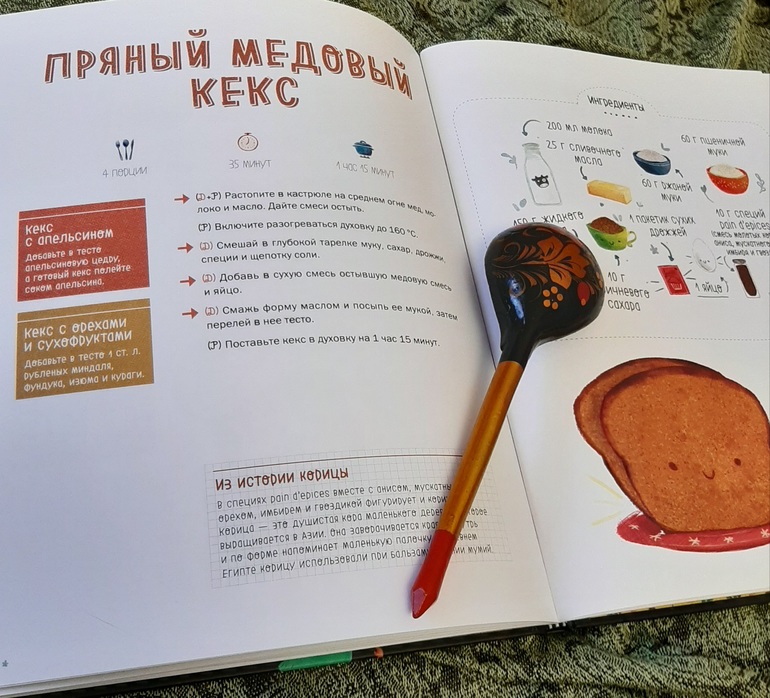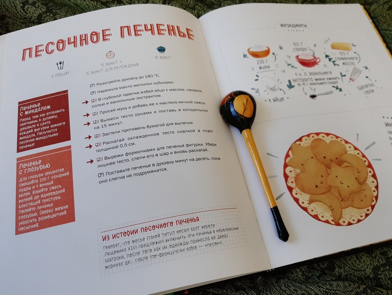 В книге очаровательные герои, забавные, яркие, аппетитные рисунки, понятный ход действия с указанием ингредиентов, нужных инструментов и затраченного времени на приготовление.