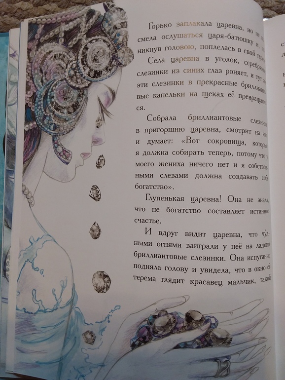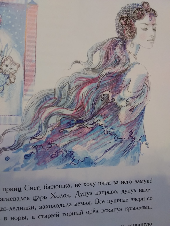 Сказка очень грустная, но дочка ее любит ) Во-первых, Власова создала очень красивые иллюстрации. Царевна Льдинка, действительно, получилась красавицей! Только король Солнце , не совсем соответствует описанию. Во-вторых, сказка не классическая. А дочка любит все необычные сказки. В-третьих, здесь очень много поводов поговорить. А честно ли поступил король Солнце, обманом выманив царевну? Благородно ли это? Или на войне все методы хороши? Хорош ли характер у царевны? Может ли красота быть единственным достоинством девушки? Читаем книгу раз пятый, и пока не нашли ответов на эти вопросы ))) Да, и ответы у дочки разные. Растёт ребёнок, взгляды меняются )