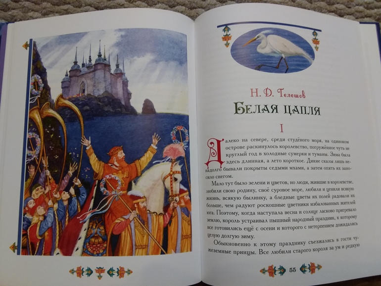 В книге несколько сказок, но из этого сборника чаще перечитываем "Белую цаплю". Дочка и мультик посмотрела, но пересматривать не просит. Я честно, удивляюсь почему так мало Телешова издают. У Мелик-Пашаева - "Крупеничка", да у АСТ -"Зоренька", да и тех в наличии нет.НО у АСТ иллюстрации только плакать. А книжку вполне можно отнести к экологическим сказкам. Истребление одного вида ради прихоти человека. В общем, очередной повод поговорить на серьёзную тему.