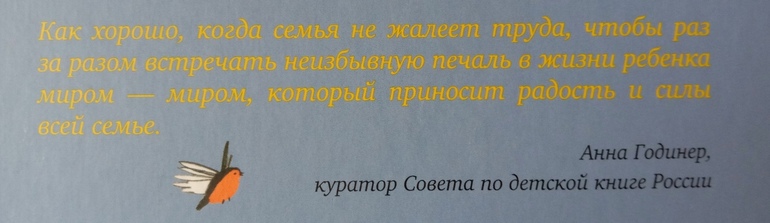 Именно от Анны Годинер я услышала об этой книге. И благодаря ей не прошла мимо. Мимо чудесной, светлой и очень нужной и детям, и взрослым книги. Которая несёт такую, казалось бы, простую истину: