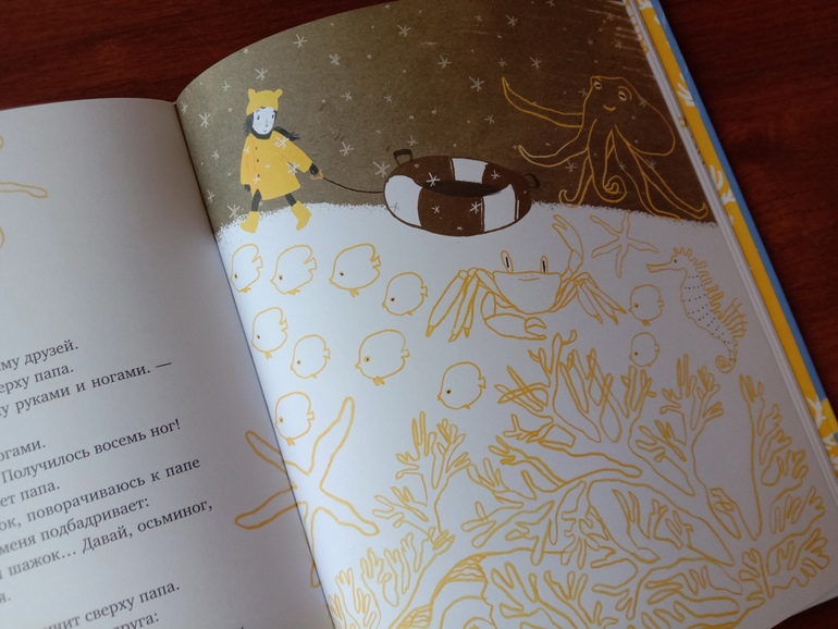 а ватрушка на горке превращается у неё в кита, который ныряет в глубокий океан, наполненный всякой океанской живностью