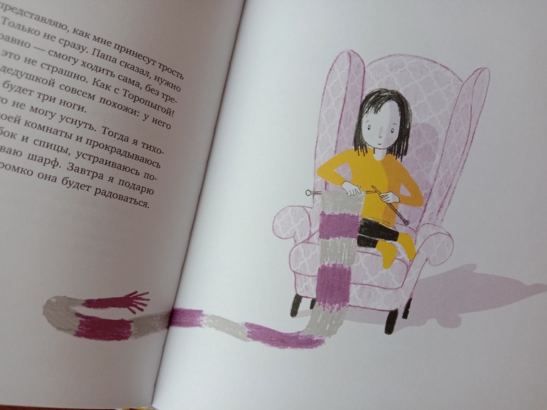 и даже может связать шарфик для его трости, которую называет торопыгой