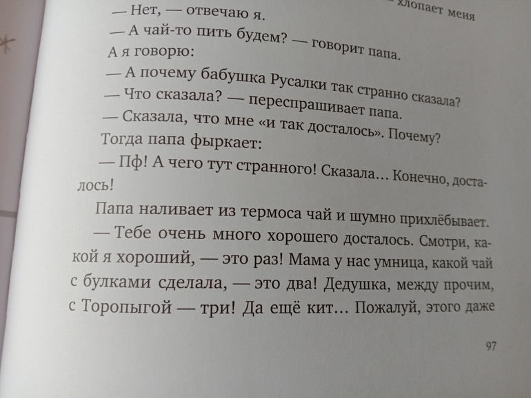 "Разве ты не видишь, какая девочка? Ей и так досталось!" - говорит эта странная бабушка. "Что мне досталось?" - спрашивает она папу. И ответ папы настолько классный...