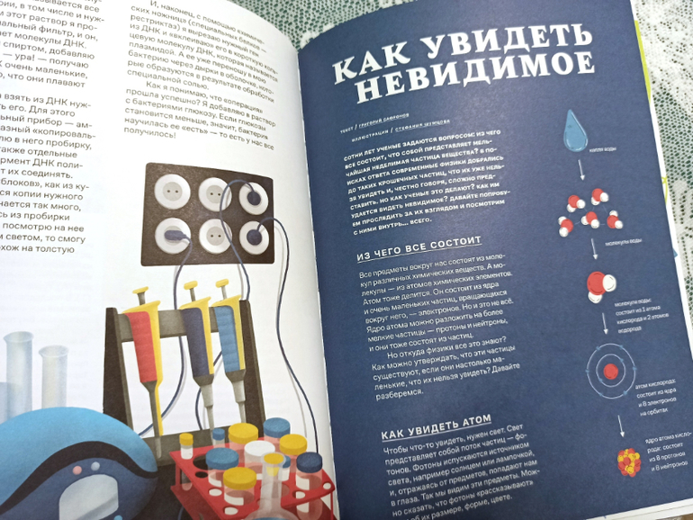 Темы: тоже многообразие. Читала выборочно, но успела узнать про микробов и микроскопы, почему невозможно быть еще меньше, чем колибри или карликовая белозубка. Мой мозг напрягся на объяснении принципа действия штангенциркуля и окончательно распался на принципах работы Большого андронного коллайдера. А вот узнать что за зверь такой «фрактал» - оказалось реально интересно.