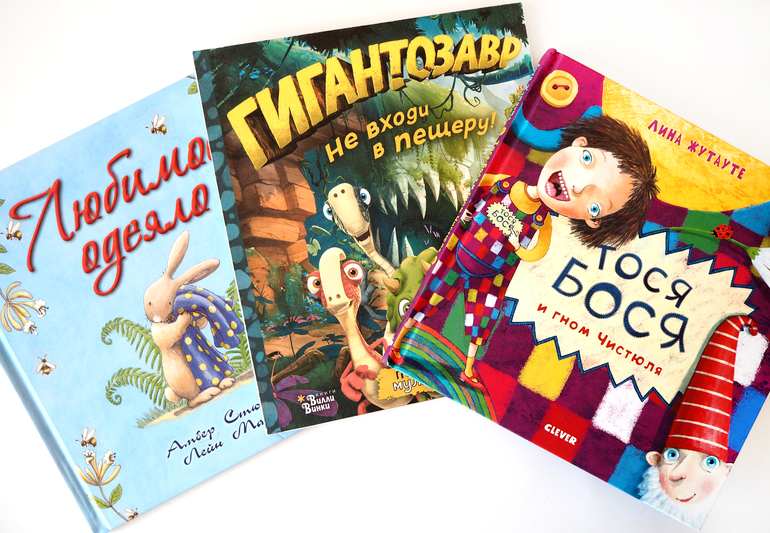 "Гигантозавр! Не входи в пещеру!" Уже писала про неё, дочке пока нравится эта незамысловатая история - часто пересматривает, ну и читать приносит периодически.