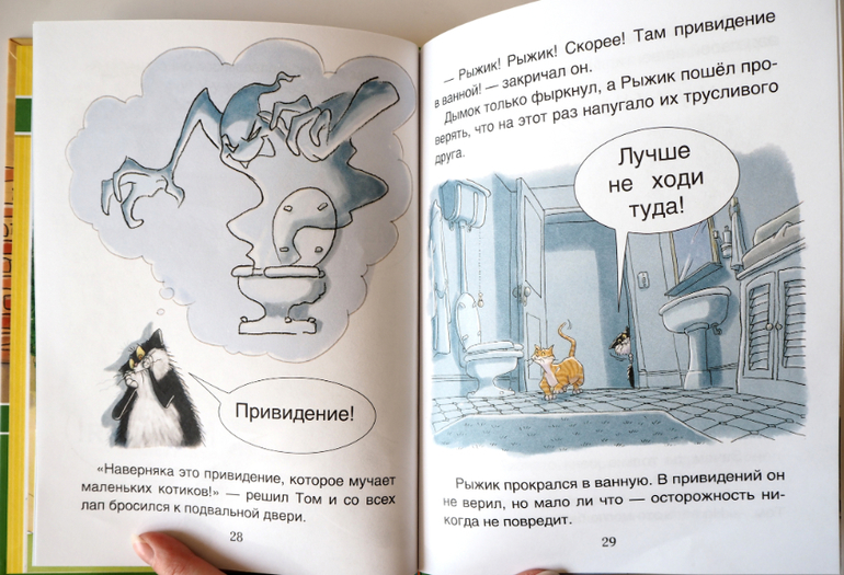 А вот "Трусливый кот" Кристина читала сама. Простая история про пугливого кота, с юмором и капелькой страшилок. Дочке понравилась, читала с удовольствием.