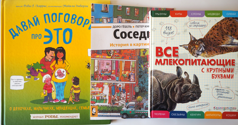 "Давай поговорим про это" - ну лично я не в восторге от неё. В первую очередь из-за иллюстраций. Была б моя воля - всех этих дурацких птичек/жуков удалила бы без сожаления. Они даже дочке не нравятся.