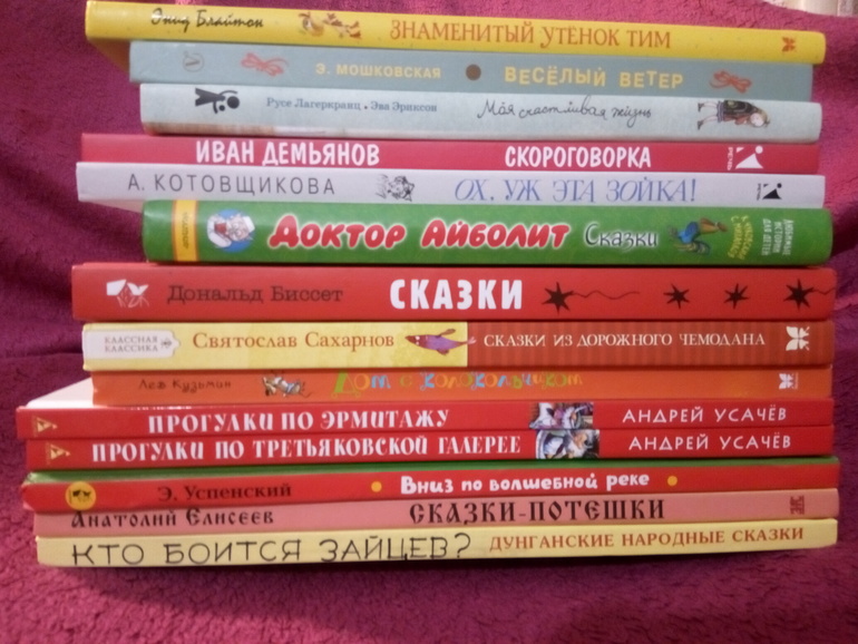 В этом месяце наибольшее впечатление произвели "Прогулки по Третьяковской галерее" и "Прогулки по Эрмитажу". Не думала, что дочку так заинтересуют картины. Сначала она нашла в шкафу карточки мемори с картинами русских художников. И подолгу их перебирала, читала описание каждой картины. Поэтому я решила дать ей эти книги.Наверное, большинство картин ей не совсем понятны, но я сама не знаю в каком возрасте их положено смотреть. Думаю, вреда от них не должно быть )