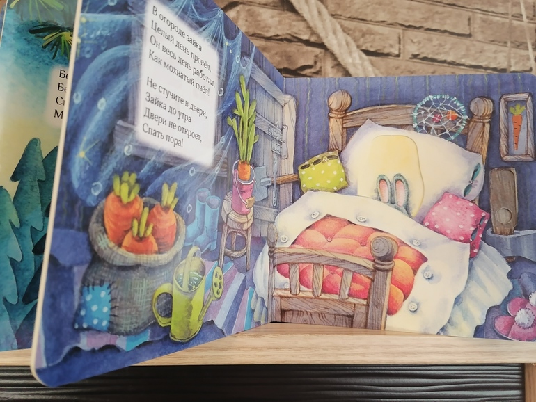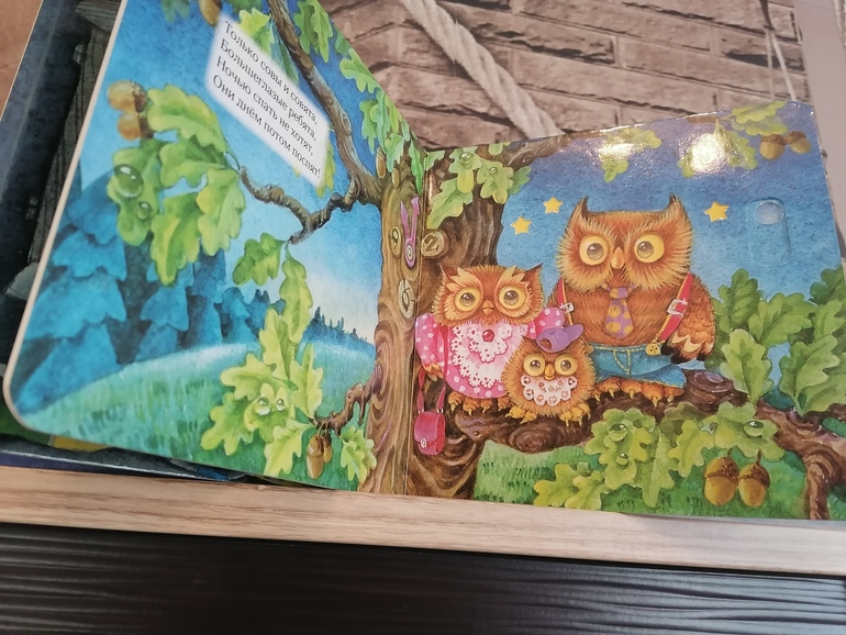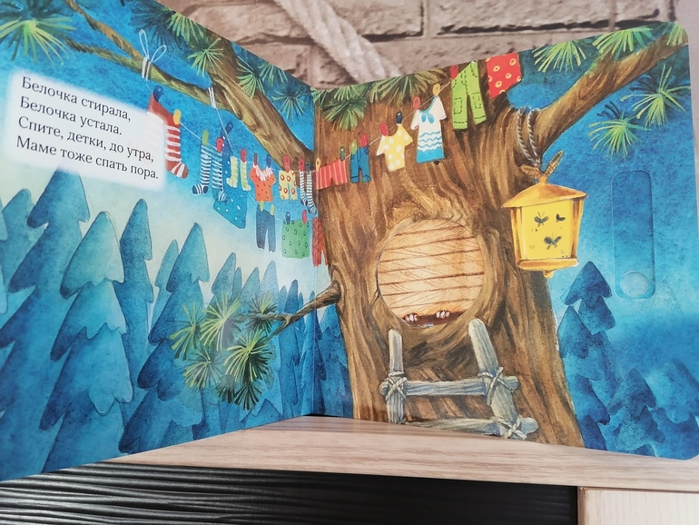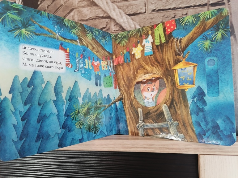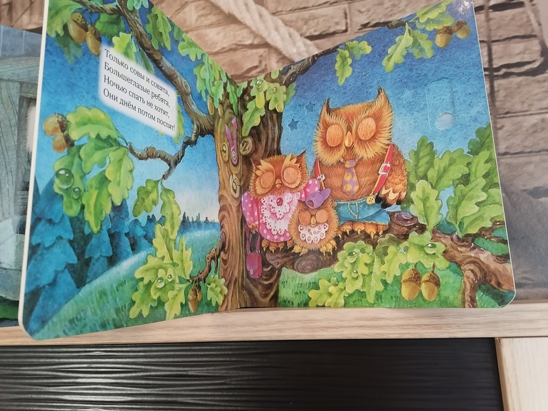 Стала любимой книгой моей дочки 2.5 лет, да и пятилетний сын с удовольствием листает и рассматривает эти милые иллюстрации. А самое главное, что детские ручки легко справляются с подвижными модулями, мы вместе читаем книгу и укладываем лесных жителей спать, а потом и сами ложимся. Прекрасная книга для чтения на ночь, а ещё у неё очень удобный формат, удобно брать с собой, ведь теперь мы с ней не расстаёмся :)
