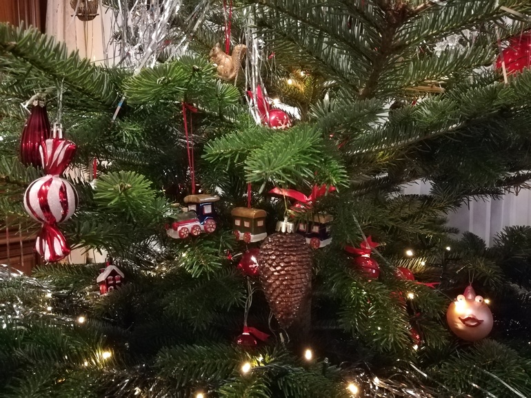 Параллельно мы ещё наряжали купленную вчера ёлочку ("утром плакать перестала, задышала, ожила").