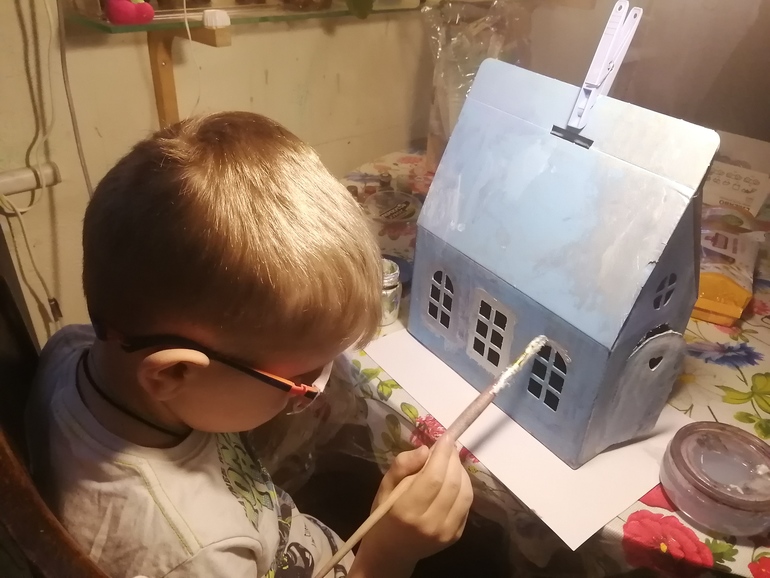 Захотелось сделать маленький кусочек волшебства, создать новогоднее настроение, мне помогали два сына