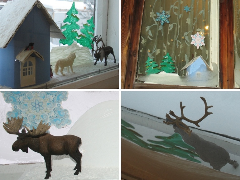 К сожалению на момент конкурса к нам пришли морозы под минус 50, поэтому со стороны улицы мало что можно разглядеть сейчас. А так там тоже есть фигурки - олень и снеговик.