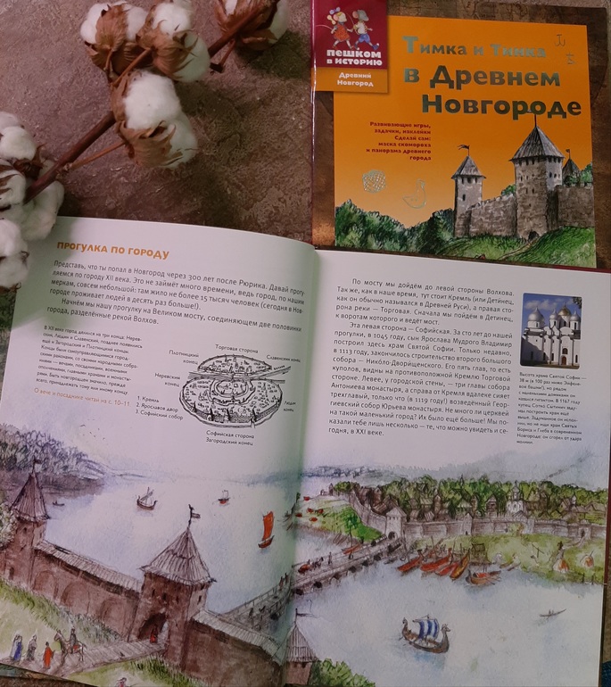 Очень мне нравится оформление энциклопедии про Древний Новогород, и рисунки чудесные, и репродукции картин и реальные фото.