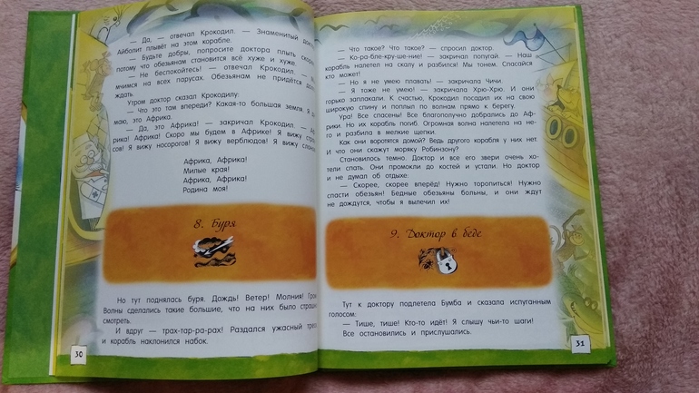 Айболит уже прочитан несколько раз. Мне понравилось оформление полей, для нашего возраста, развороты без иллюстраций получаются все равно с картинками!