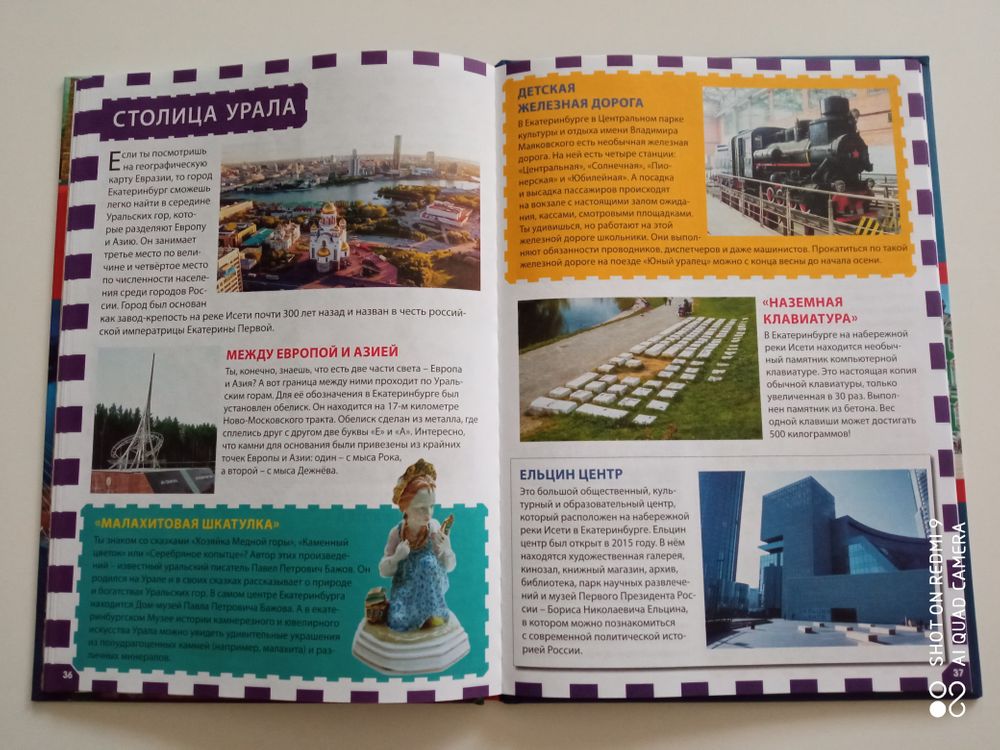 Но больше всего Ане понравился из энциклопедии разворот "Столица Урала". Мы живем в Екатеринбурге и фотографии знакомых достопримечательностей вызывают восторг. Особенно памятник клавиатуре)))