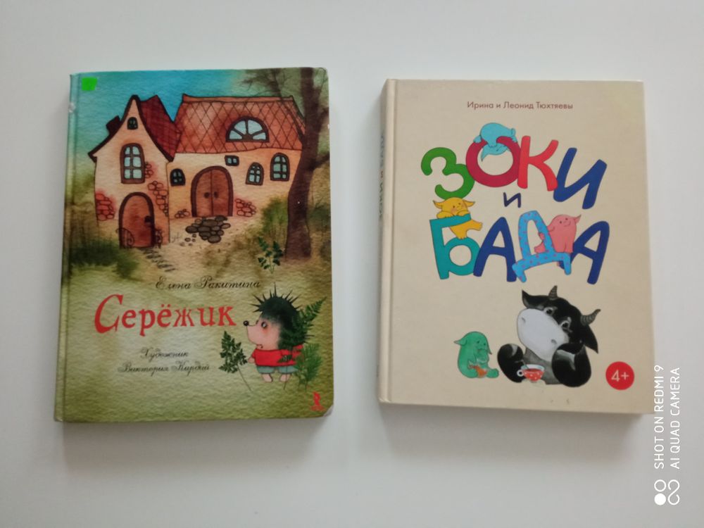 Впервые брали в библиотеке эти книги. Обе понравились!!! Ежулю изообразили в виде аппликации, но с зеленым яблоком.