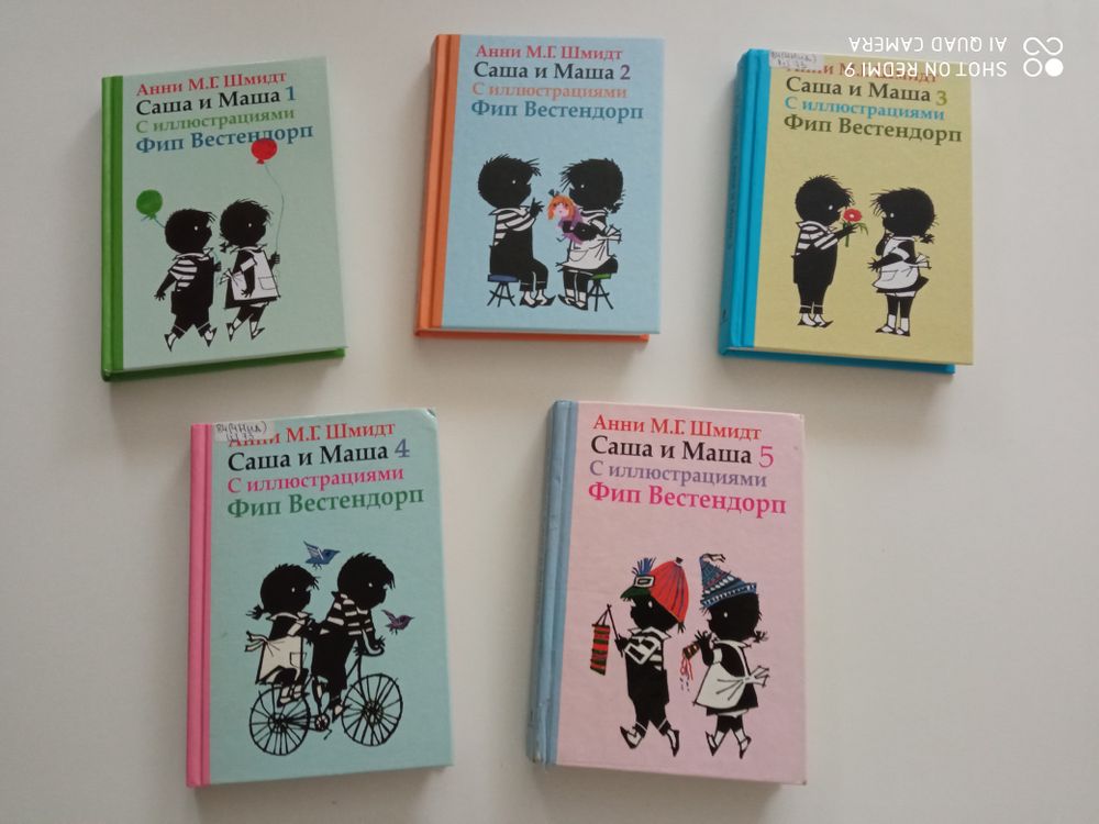 Прочитали все пять книг Анни Шмидт про Сашу и Машу. До этого читали только первые две, остальные из библиотеки. Книги ребенку очень нравятся.