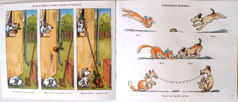 "Рассказы в картинках" дочка уже читала как-то, но захотелось обновить впечатления. Текст мелковат, конечно, но его мало, так что это не вызывает сложностей.