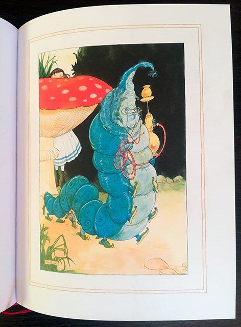 и каждого героя истории про Алису показал со всех сторон. Например, Синей Гусеницы 4 иллюстрации, Болванщика и Мартовского Зайца - 10 (в подсчетах я могла ошибиться. в меньшую сторону))