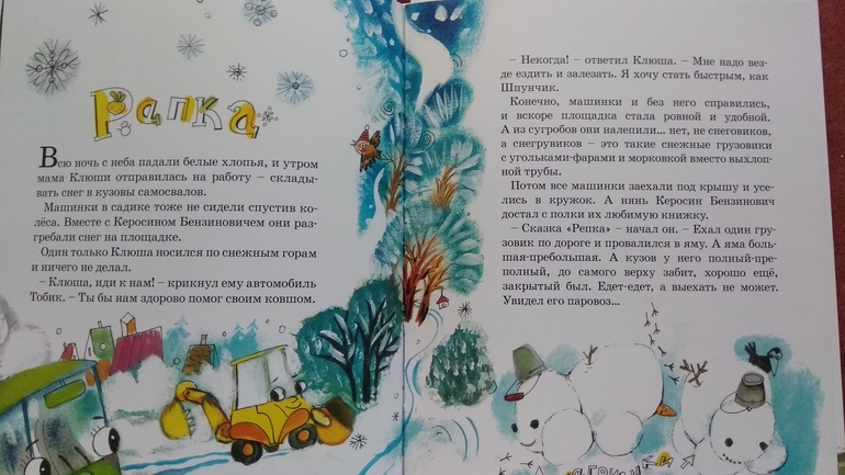 И сказка про репку. Многих смущает в отзывах что морковка это выхлопная труба. Честно я посмеялась, а ребенок даже не обратил внимание.