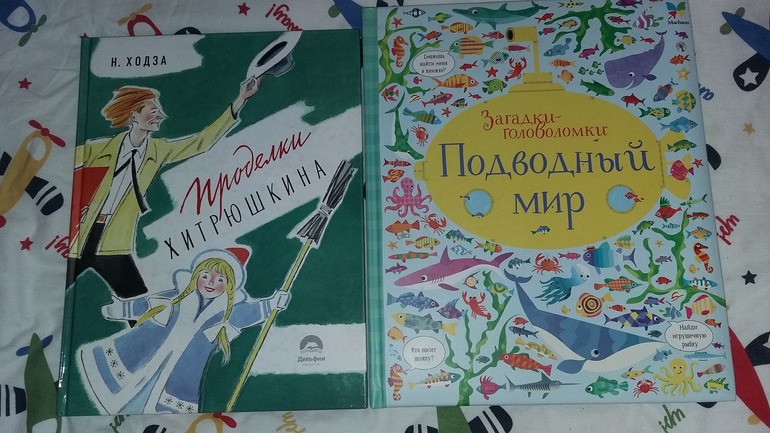 Эти книжечки с заданиями, в "Проделках Хитрюшкина" в основном найти ошибки на картинках, лично мне книга не очень нравится, сам герой Хитрюшкин какой-то странно-раздражающий, вечно все на бегу у него и тяп-ляп))) а дети слушали и отгадывали с удовольствием.