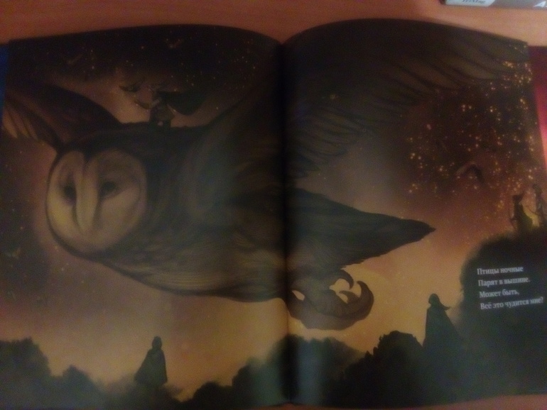 Мне это стихотворение очень нравится, я его интерпретирую для себя и для детей так, что рыцари - это Ангелы, которые охраняют нас. Иллюстрации ночные, завораживающие, сине-фиолетовые. Когда открываешь последнюю, светлую, хочется зажмуриться, как когда выходишь из темноты к свету. Мальчишкам книга очень понравилась, разглядывали её с большим интересом.