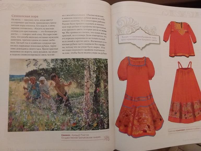 Для начала приведу вам небольшой отрывок, чтобы вы поверили, что это не только книга по шитью: "По возрасту дети делились на две категории: до 7 лет они назывались младенцами, от 7 до 14 лет- отроками. Бабка-повитуха, принимая новорождённого, первым делом опоясывала его нитью, спряденной матерью во время вынашивания ребёнка. ... До крещения младенцев было принято заворачивать в пелёнки из ношеных родительских рубах, а над люлькой вешать полог из состарившейся материнской юбки. Это делалось для того, чтобы обережная сила отца и матери незримо укрывала родимое дитятко от бед и напастей".