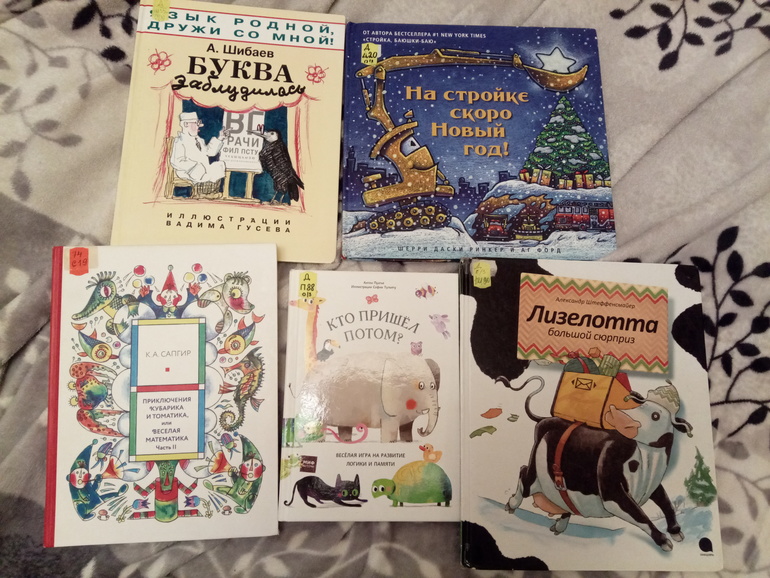 Лизелотта. Большой сюрприз. Отличная книжка картинка, на новогоднюю тему. Читали её раньше со старшим. Теперь с удовольствием перечитали вместе с младшим, старший тоже слушал и не раз.