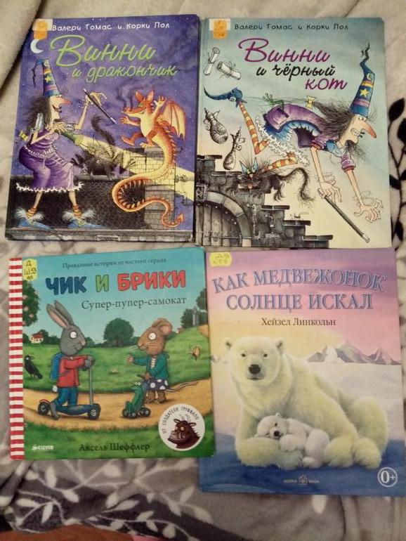 2 книжки про Ведьмочку Винни. Забавные. Прочитали не без удовольствия.