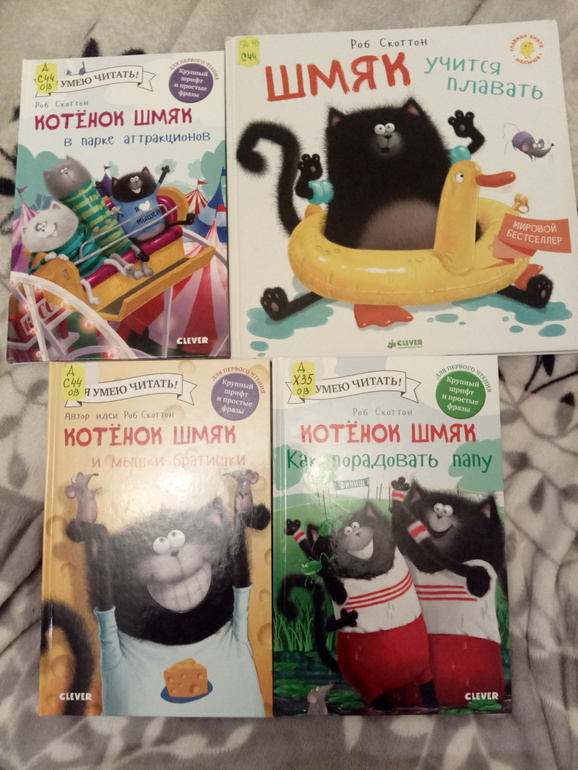 Отличные книжки! Мы тоже недавно брали младшей Мимбо-Джимбо в библиотеке для самостоятельного чтения. Т.к. раньше не читали, ей понравилось) и Котёнка Шмяка берём, ей очень нравится)