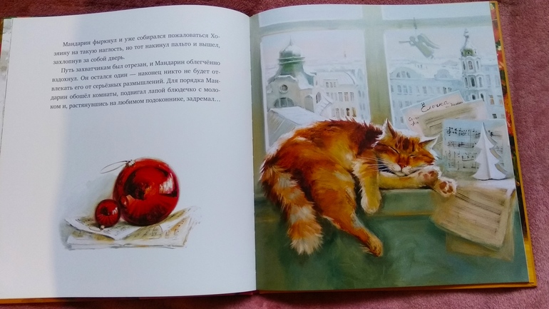 ! Такая прекрасная книга. Конечно как и все - я купила из-за иллюстраций, тут даже говорить не буду ничего. Но для меня и текст оказался очень близким. У кого есть коты однозначно - берите. Жил большой рыжий кот, хорошо жил. А потом к нему домой попадает маленький Котёнок и кот его принимает. Знаете, я точно так же принесла котенка домой, у нас жил шотландец с норовом, но он принял этого маленького запуганного обормотика, и да они потом обязательно спали вместе)))