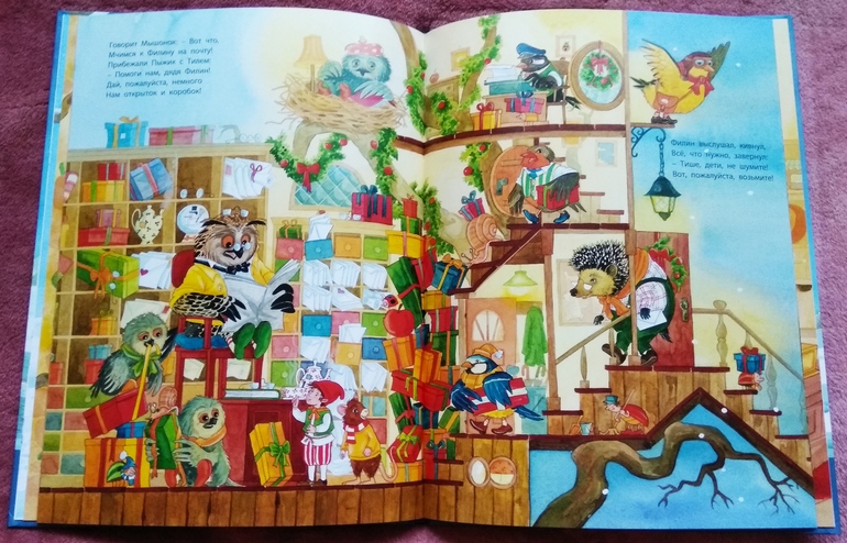 . Книга тоже красивая своими иллюстрацими, там можно найти многое - и как живут белки, и как барсуки и даже гуси))) содержание в стихах и просто милое, как гном и мышонок хотят нарядить для всех ёлку и ходят по домам просят - шишек, конфет, орехов, мишуры)))