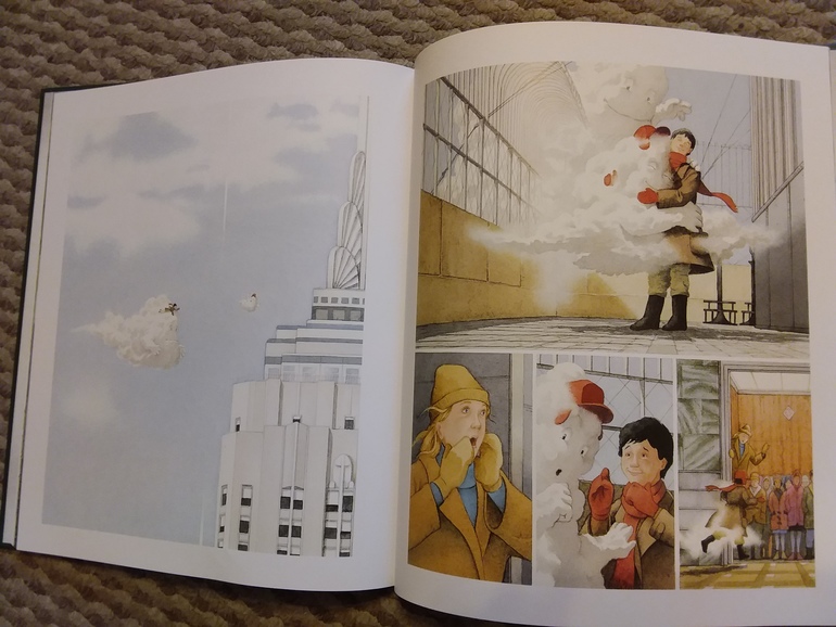 История такая - дистанционка, усталость и раздражение. Моему мозгу просто необходимо было переключиться. И вот я беру книжечку, чтобы изучить что это за зверь - книга без слов... Сначала её посмотрела я, потом пришли дети. Дочка рассказала брату, свою историю про малыша-облачко )). А потом сын рассказал свою историю при кошечек-облачков, про великанов- облачков и про миллион облачков!! Так что кроме визуального ряда, еще и полезный фактор - учимся составлять рассказ по картинкам )