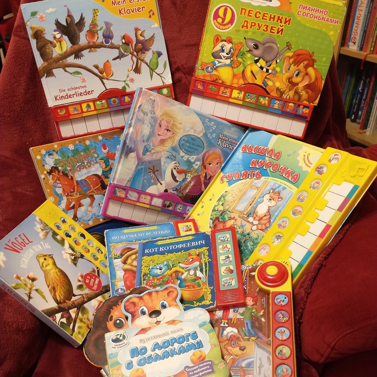 Не могу не упомянуть полчища музыкальных книг, которые постоянно достаются и играют песенки и просто звуки.