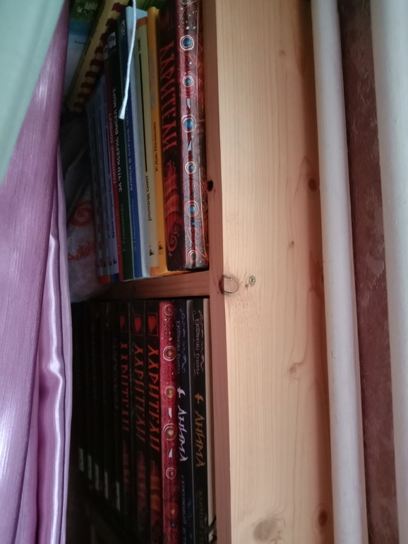 Вот и моя небольшая домашняя библиотека дошла до того, что "полки не резиновые". Ещё с распродаже сказок от речи началость то, что сначала появилась стопочка книг на комоде (и переезжать ей было совсем некуда). А потом начала расти стопка книг на гладильной доске))). И тогда я присмотрела место, где можно сделать ещё полочки для книг и начала "мучить" мужа.