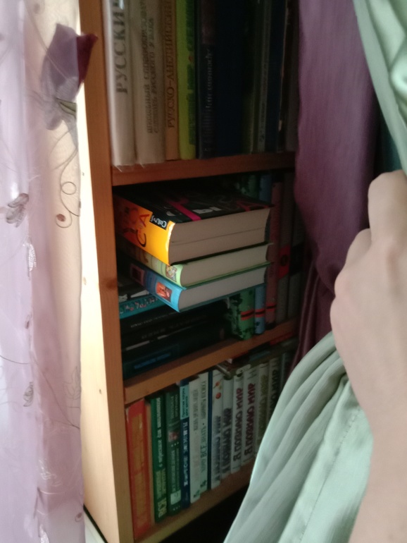 Мои книжки теперь заняли новые места и гладильная доска теперь перестала быть книжным столиком))). Думаю правда как их поровнее расставить))).