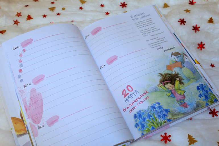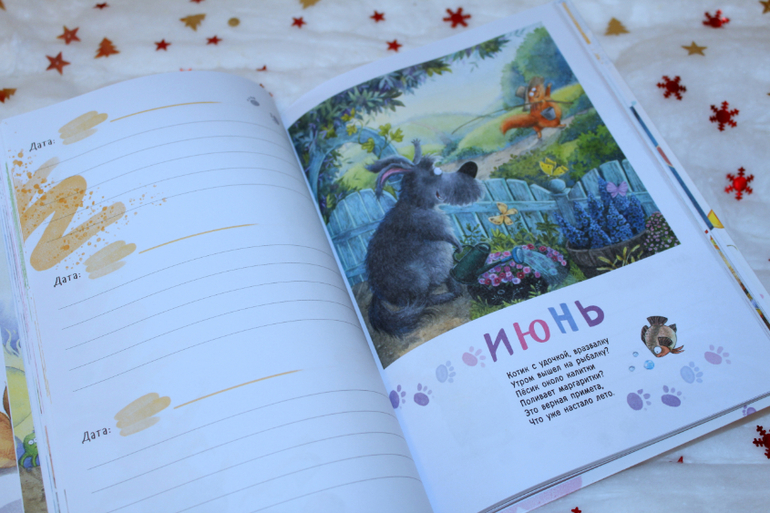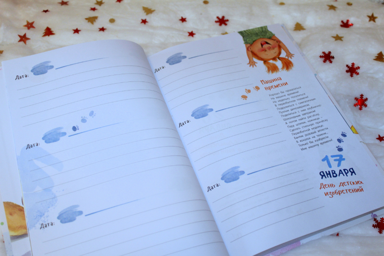 Совсем недавно я признавалась в любви к творчеству Натальи Карповой и Любови Ерёминой-Ношин, а тут такая радость под Новый год, красивущий ежедневник с рисунками и стихами любимого тандема! Ура! Даже не понятно, кто же больше рад, то ли я, то ли дочь.)) Никогда раньше я не встречала ежедневники, которые бы поднимали настроение. А теперь такой имеется! Юмор на каждой странице, в каждой строчке, в каждой нарисованной козявочке-букашечке. Открываешь любую страницу и улыбаешься. Настоящее волшебство.) Но это еще не все! В этом ежедневнике вы не найдете обычных праздников, таких как 8 Марта, или 1 Мая. Зато в нем есть День кошек, День китов, День буквы Ё, День танца и ещё много-много всяких интересненьких дат.) Я уже представляю, как мы с Настёной будем отмечать эти даты.) Получится весело и необычно.) На каждый такой праздник есть стихотворение.