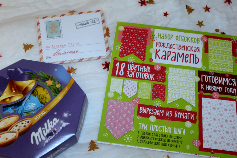 20 декабря Снеговик принес Настёне вкусняшки, набор для вырезания флажков и классный ежедневник.)