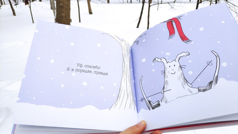 А важно то, что зимой интересно и очень вовремя получается читать интерактивную книжку МИФа с забавным кроликом, вышедшим на лыжную прогулку.