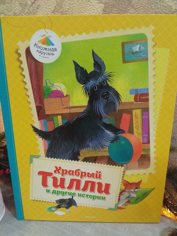Храбрый Тилли. В этой книге два произведения - Храбрый Тилли Яна Ларри и Веселые знакомства Алексея Ольгина от лица терьера. Сын сказал нормально, когда спросила про что там было, ничего внятного не ответил)) а вот мне было ну ооочень скучно, хотелось бросить, может сказывается мое равнодушное отношение к собакам...оба произведения написаны от лица собак, не уверена что оставлю книгу дома.