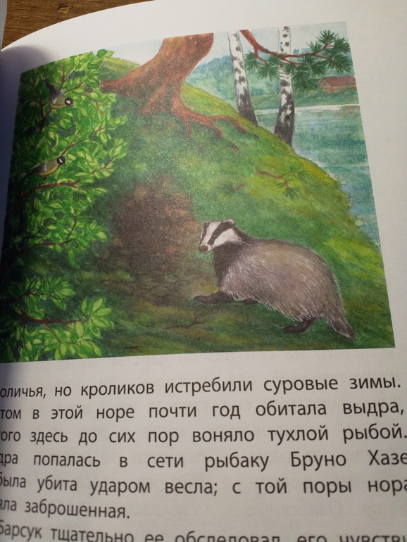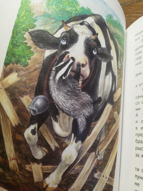 Про барсука понравились иллюстрации. Это что это он на корову запрыгнул? или она его пыталась забодать?))
