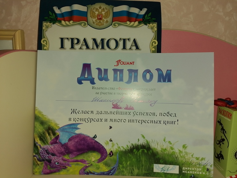 Спасибо!!!Получили и мы подарок - награждение от издательства Фолиант!