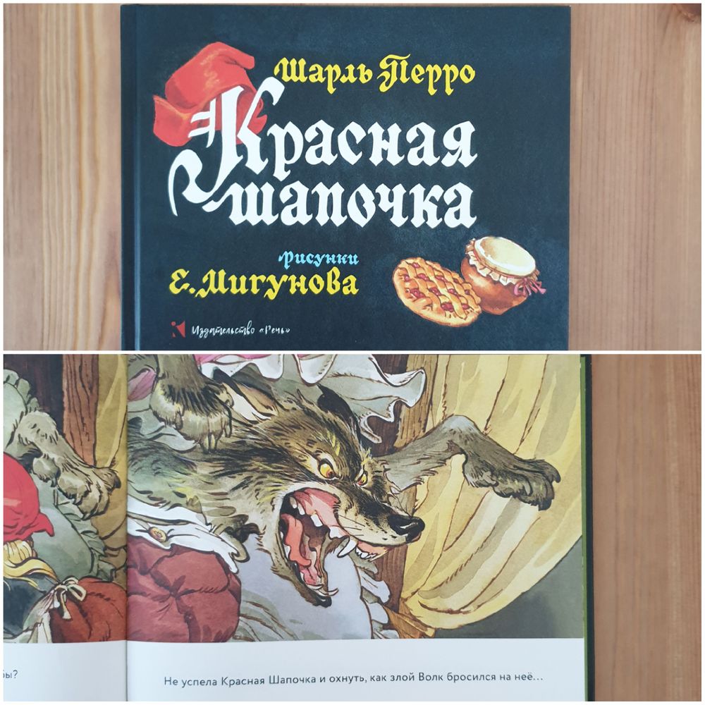 📖 Шарль Перро "Красная шапочка" от Речи - замечательное издание с иллюстрациями Мигунова по одноименному диафильму. Только для настоящих маленьких храбрецов, потому что волк страшный:)